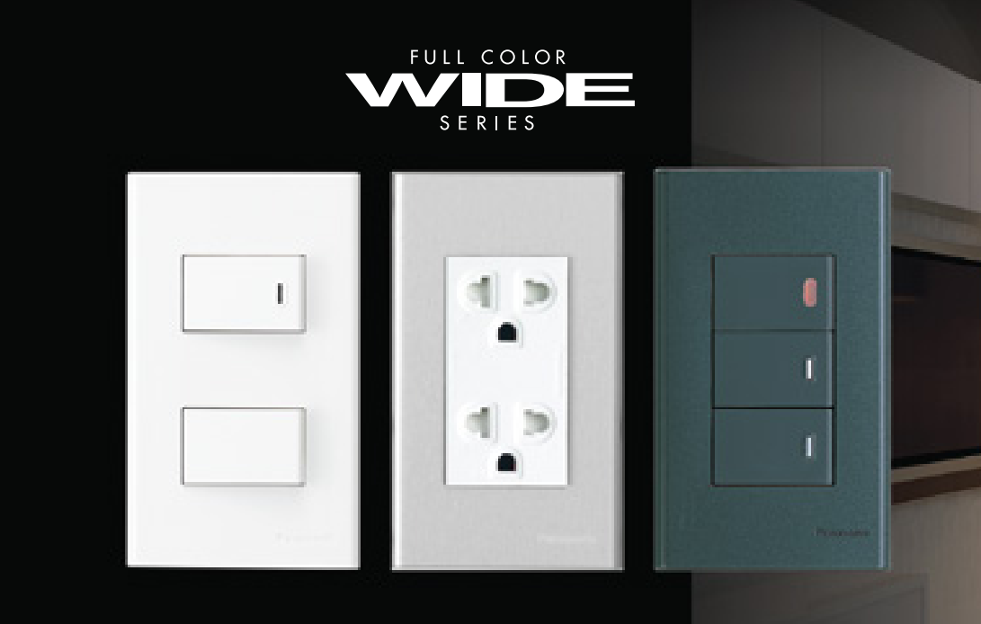 Panasonic thương hiệu thiết bị điện hàng đầu thế giới, với kinh nghiệm sản xuất, phân phối các sản phẩm thiết bị điện cho các công trình xây dựng. Trong đó, dòng sản phẩm Wide Series đến từ thương hiệu Nhật Bản này có thiết kế đơn giản, tinh tế mà không kém phần sang trọng với 2 màu cơ bản là trắng và xám, công tắc dòng Wide thường đi cùng với đèn báo OFF tiện dụng và tạo điểm nhấn nhất định cho căn phòng.