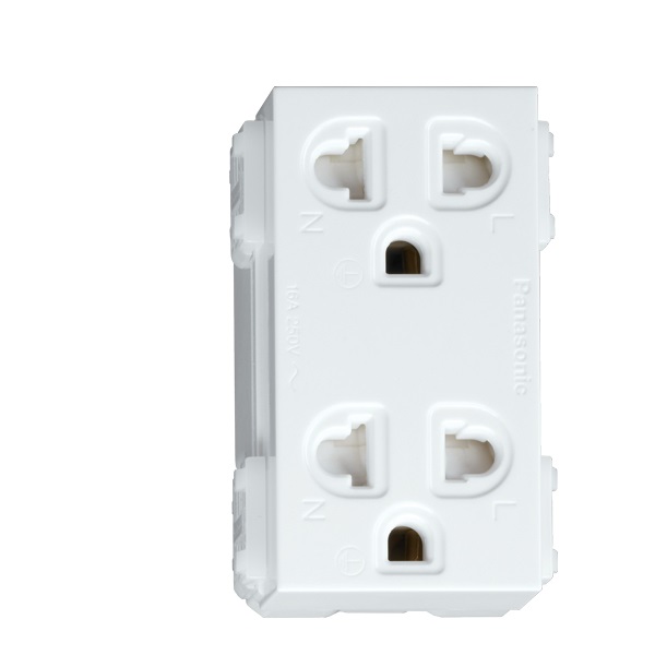 Ổ cắm đôi 3 chấu-màu trắng có màn che 16A 250V Bắt Vít Panasonic WEV1582-7SW – Dòng Wide Series