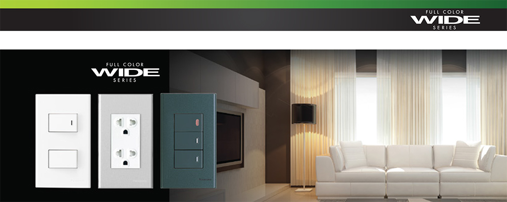 Panasonic thương hiệu thiết bị điện hàng đầu thế giới, với kinh nghiệm sản xuất, phân phối các sản phẩm thiết bị điện cho các công trình xây dựng. Trong đó, dòng sản phẩm Wide Series đến từ thương hiệu Nhật Bản này có thiết kế đơn giản, tinh tế mà không kém phần sang trọng với 2 màu cơ bản là trắng và xám, công tắc dòng Wide thường đi cùng với đèn báo OFF tiện dụng và tạo điểm nhấn nhất định cho căn phòng.