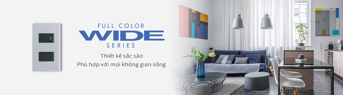 Dòng sản phẩm Wide Series dòng sản phẩm công tắc ổ cắm với nhiều ưu điểm: đa dạng về mẫu mã, chức năng ổn định, độ an toàn cao và giá thành phù hợp với mọi đối tượng khách hàng cũng như công trình.
