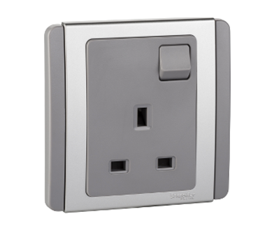 13A 3 pin switched socket Schneider Neo Series Grey Silver Color E3015_GS_G19
