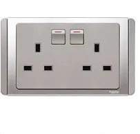 13A 3 Pin Twin Switched socket Schneider Neo Series Grey Silver Color ET3025_GS