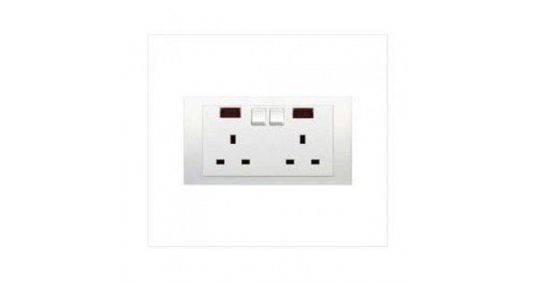 13A Twin Gang Double Pole Large Dolly Switched Socket With Neon