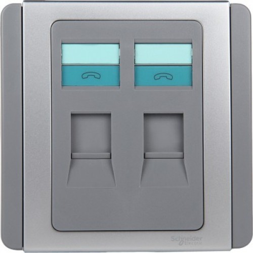 2 Gang Tel Outlet With Shutter Schneider Neo Series Grey Silver Color E3032RJ_GS_G19