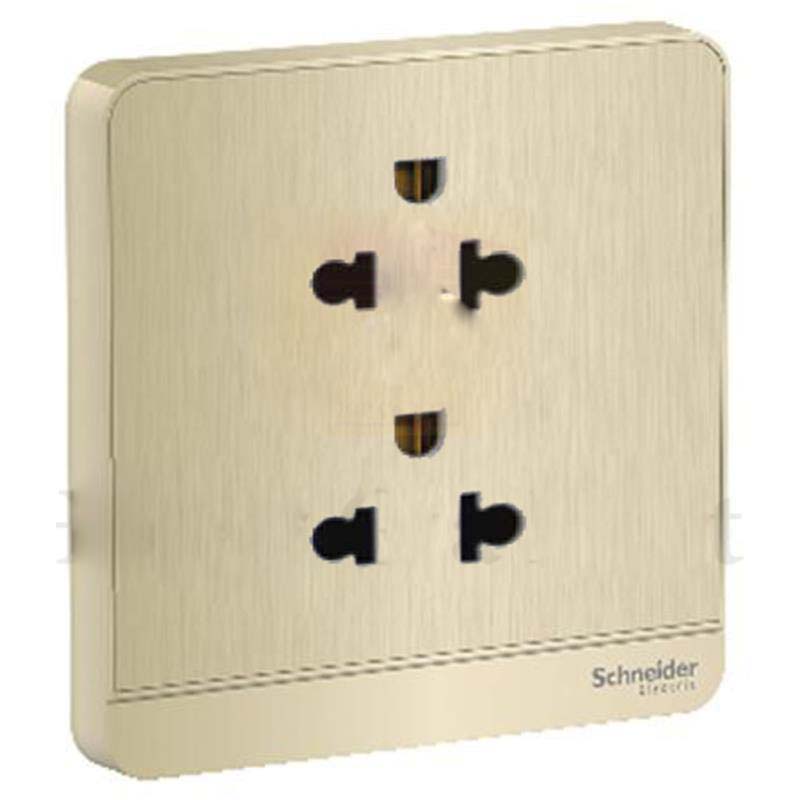 Bộ ổ cắm đôi 3 chấu 10A màu vàng ánh kim Schneider AvatarOn E83426UES2_WG