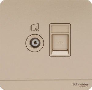 Bộ ổ cắm TV và ổ cắm mạng 5e màu vàng ánh kim Schneider AvatarOn E8332TVRJS5_WG