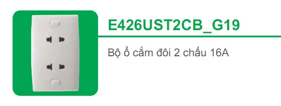 Bộ ổ cắm đôi 2 chấu 16A Schneider S-Classic E426UST2CB_G19
