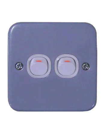 Bộ 2 công tắc 1 chiều 10A, mặt kim loại