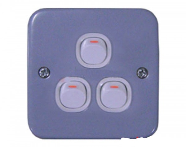 Bộ 3 công tắc 1 chiều 10A, mặt kim loại