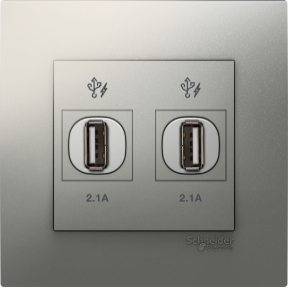 Bộ ổ cắm sạc USB đôi 2.1A Schneider Vivace series aluminum silver KB32USB_AS