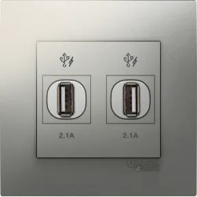 Bộ ổ cắm sạc USB đôi 2.1A Schneider Vivace series aluminum silver