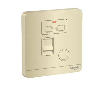 Mặt đấu dây cầu chì 13A có công tắc và đèn led màu vàng ánh kim Schneider AvatarOn E8331DFSGN_WG