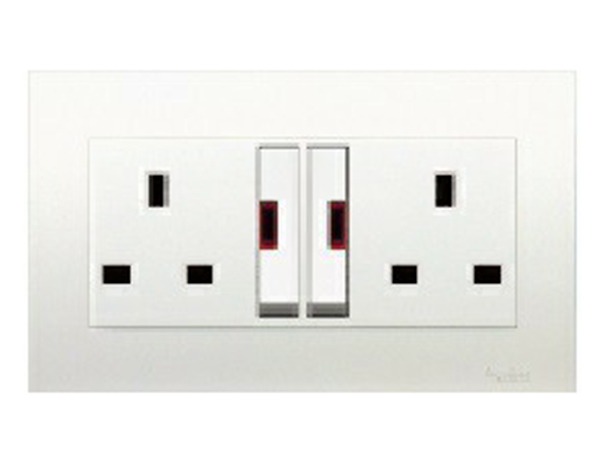 Ổ cắm đôi 3 chấu chuẩn anh 13A có công tắc 2 cực lớn có đèn Neon Schneider