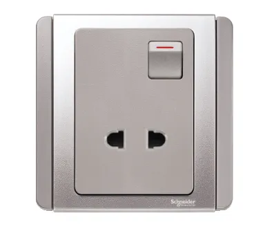 Ổ cắm đơn 2 chấu 10A + 1 công tắc Schneider Neo Series Grey Silver Color E3015US_GS_G19