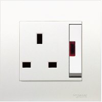 Ổ cắm đơn 3 chấu chuẩn anh 13A có công tắc 2 cực lớn có đèn Neon Schneider Vivace series white KB15LDN_WE