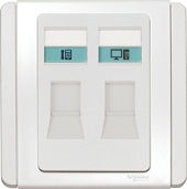 Tel Outlet + Data Cat5e Outlet W. Shutter Schneider Neo Series White color E3032TD_WW_G19